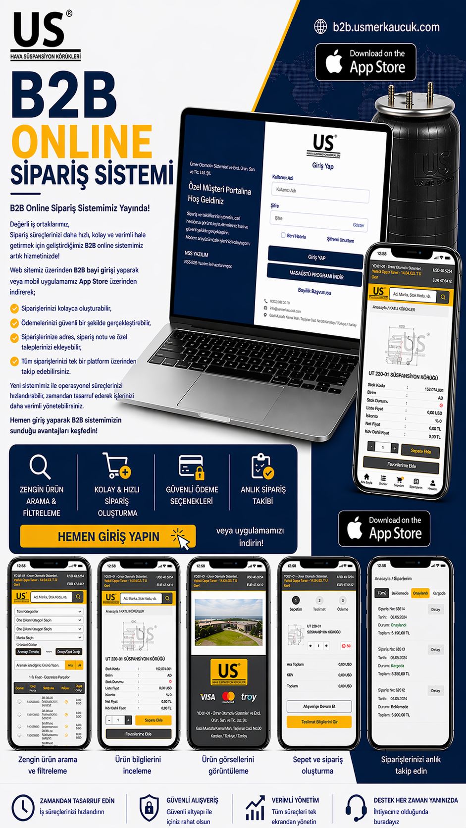 Web sitemiz üzerinden B2B bayi girişi yaparak veya mobil uygulamamızı App Store üzerinden indirerek;